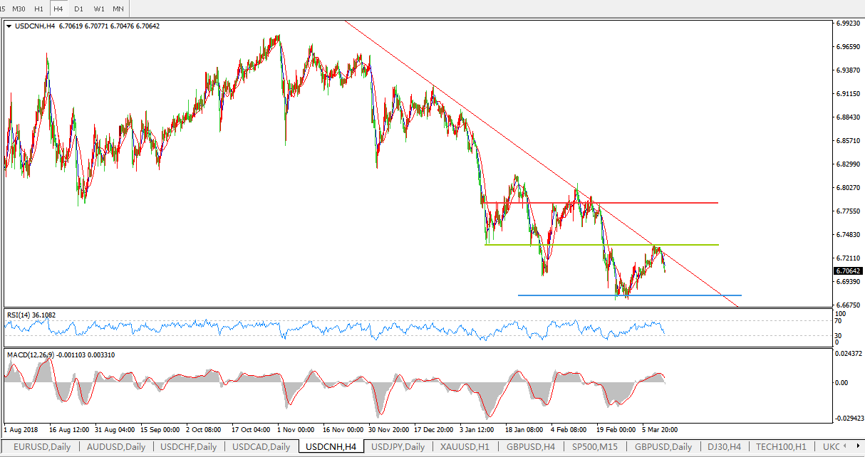 美元兑人民币USDCNH  4小时图: