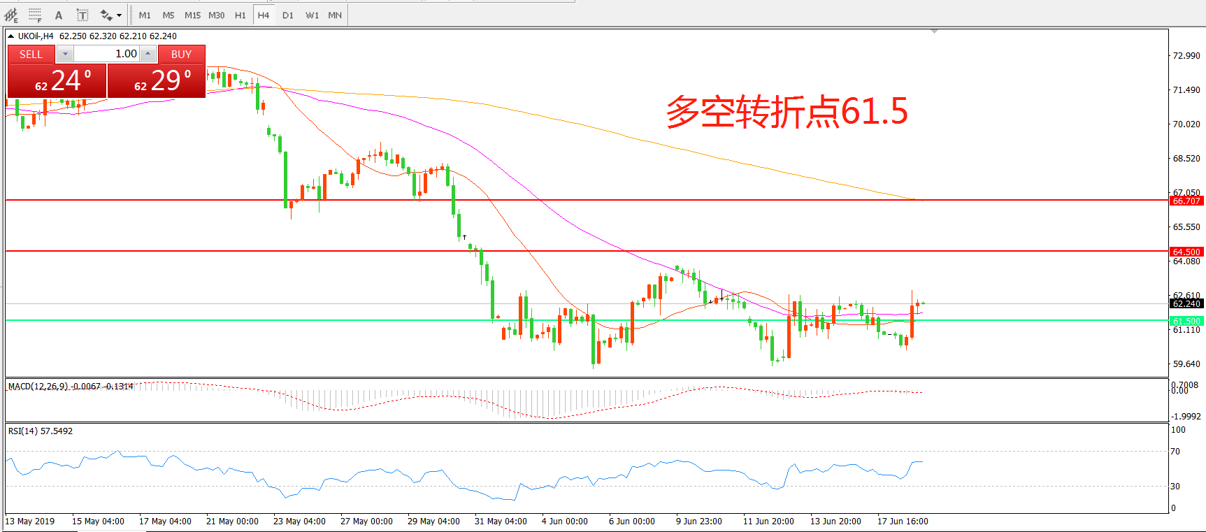 交易策略:在61.50之上看涨,目标64.50 66.70