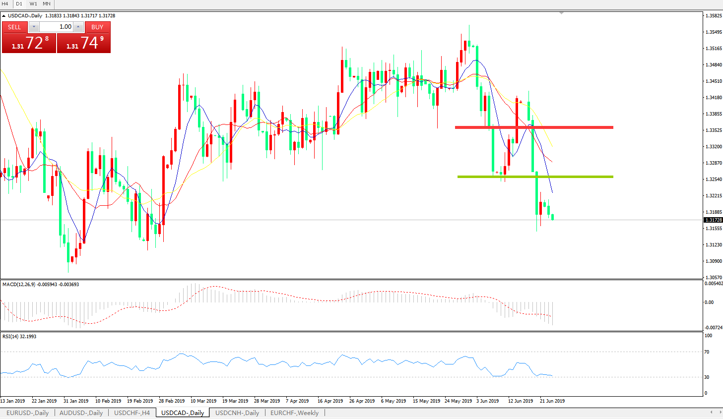 技术面简析:日线图均线有序空头排列,价格反弹乏力后再度下行,MACD在0轴下方运行且动能柱加速放量,RSI持续走低,预计汇价将进一步下行。