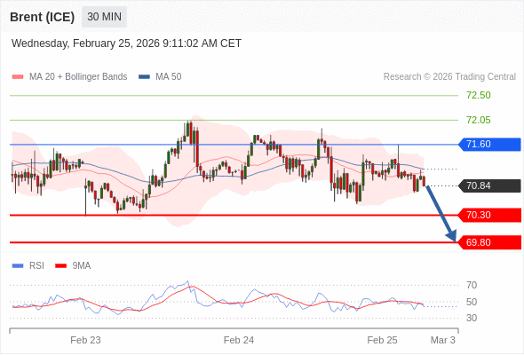 在 71.60 之下,看跌,目标价位为 70.30 ,然后为 69.80 。