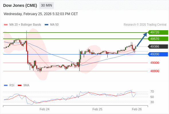 在 49200 之上,看涨,目标价位为 49570 ,然后为 49720 。