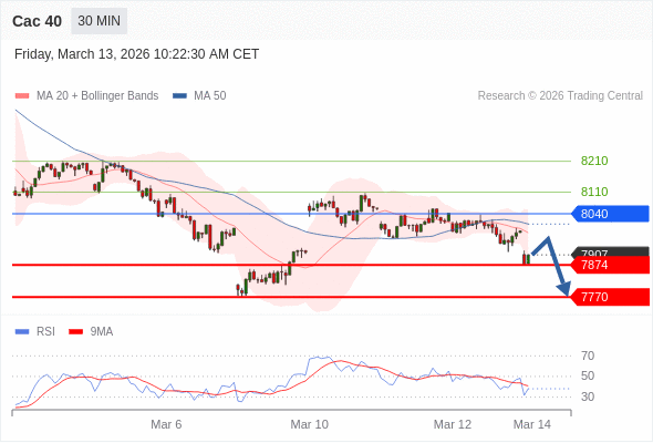Cac 40 当日内: 期待7874。