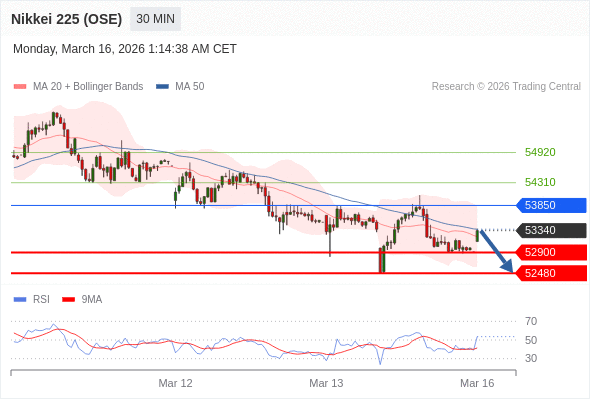 在 53850 之下,看跌,目标价位为 52900 ,然后为 52480 。
