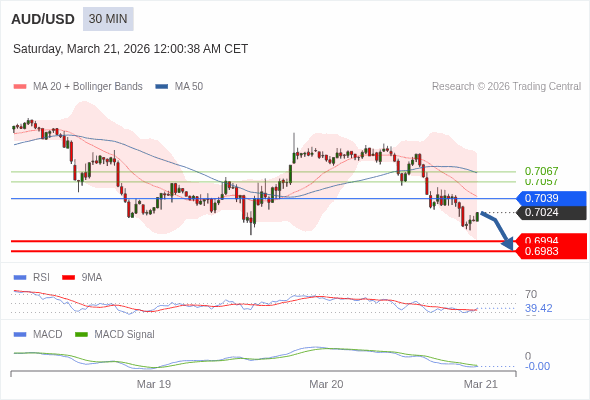 交易策略: 看跌,在 0.7039 之下。