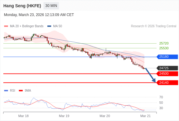 在 25180 之下,看跌,目标价位为 24500 ,然后为 24140 。