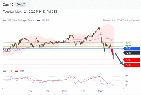 在 7890 之下,看跌,目标价位为 7500 ,然后为 7325 。