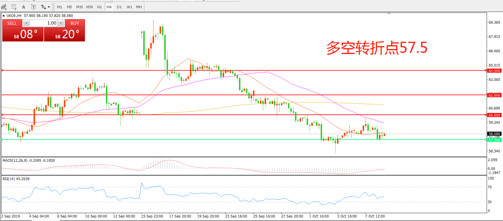 多空转折点:57.50