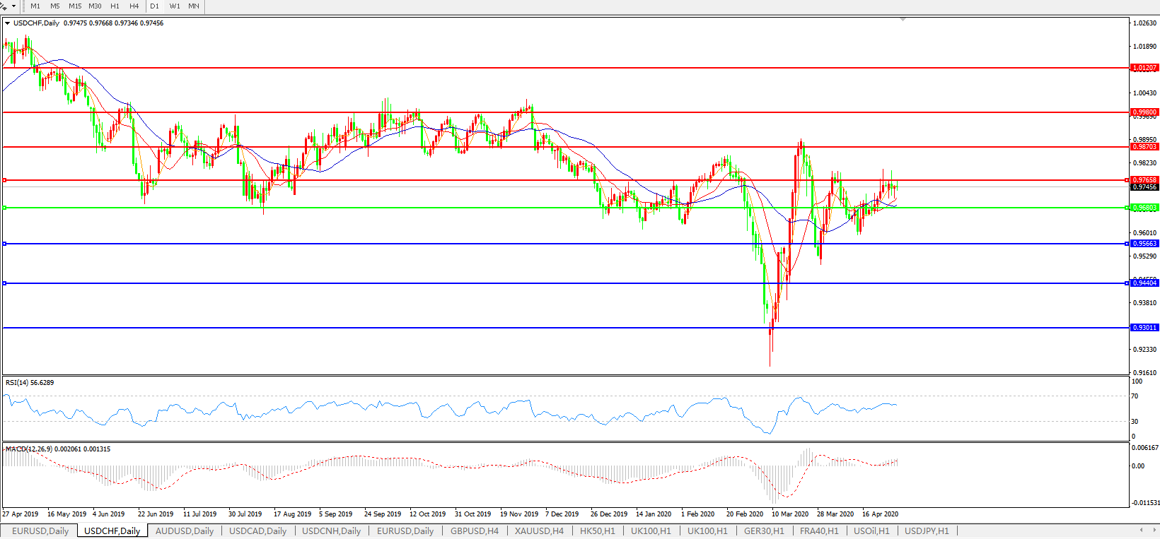 美元兑瑞郎USDCHF 日线图: