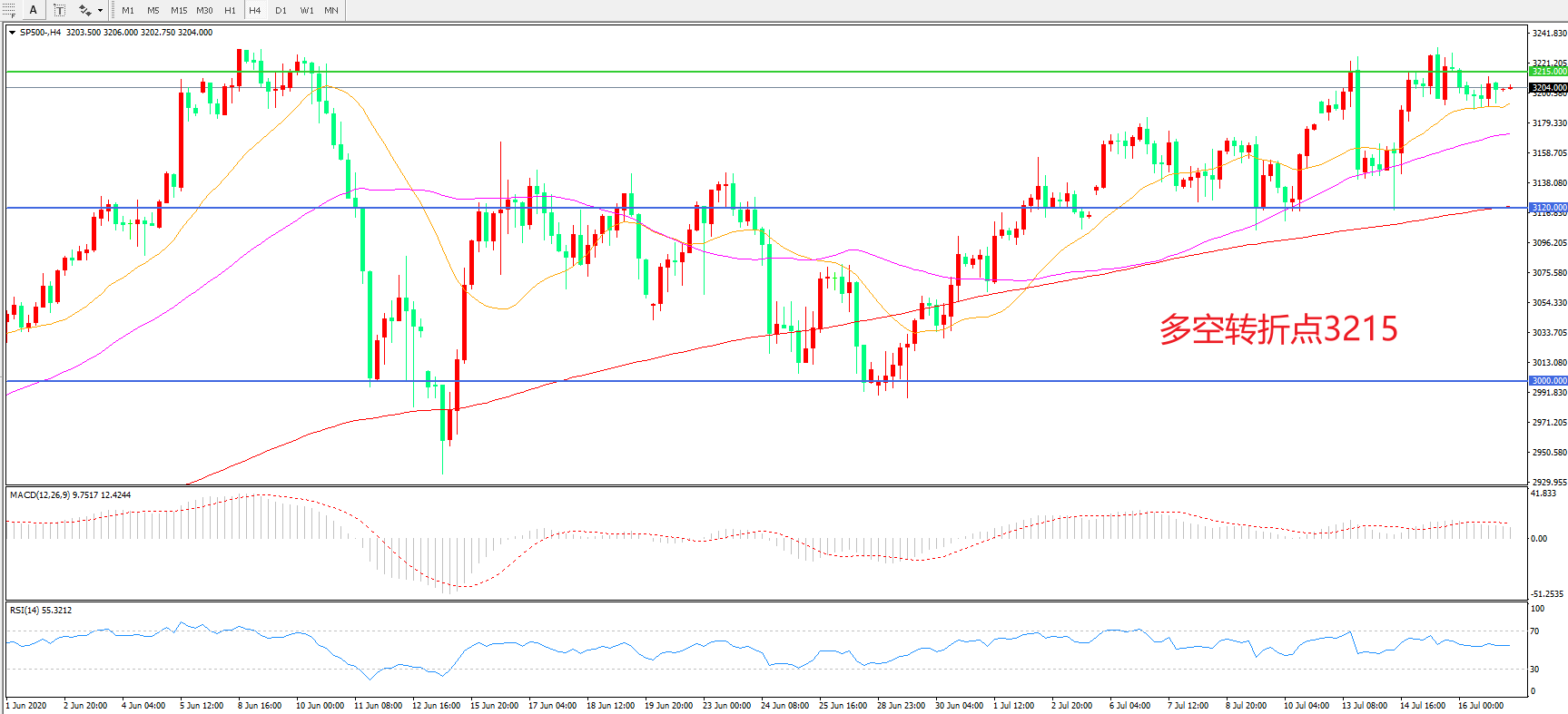 多空转折点:3215.00
