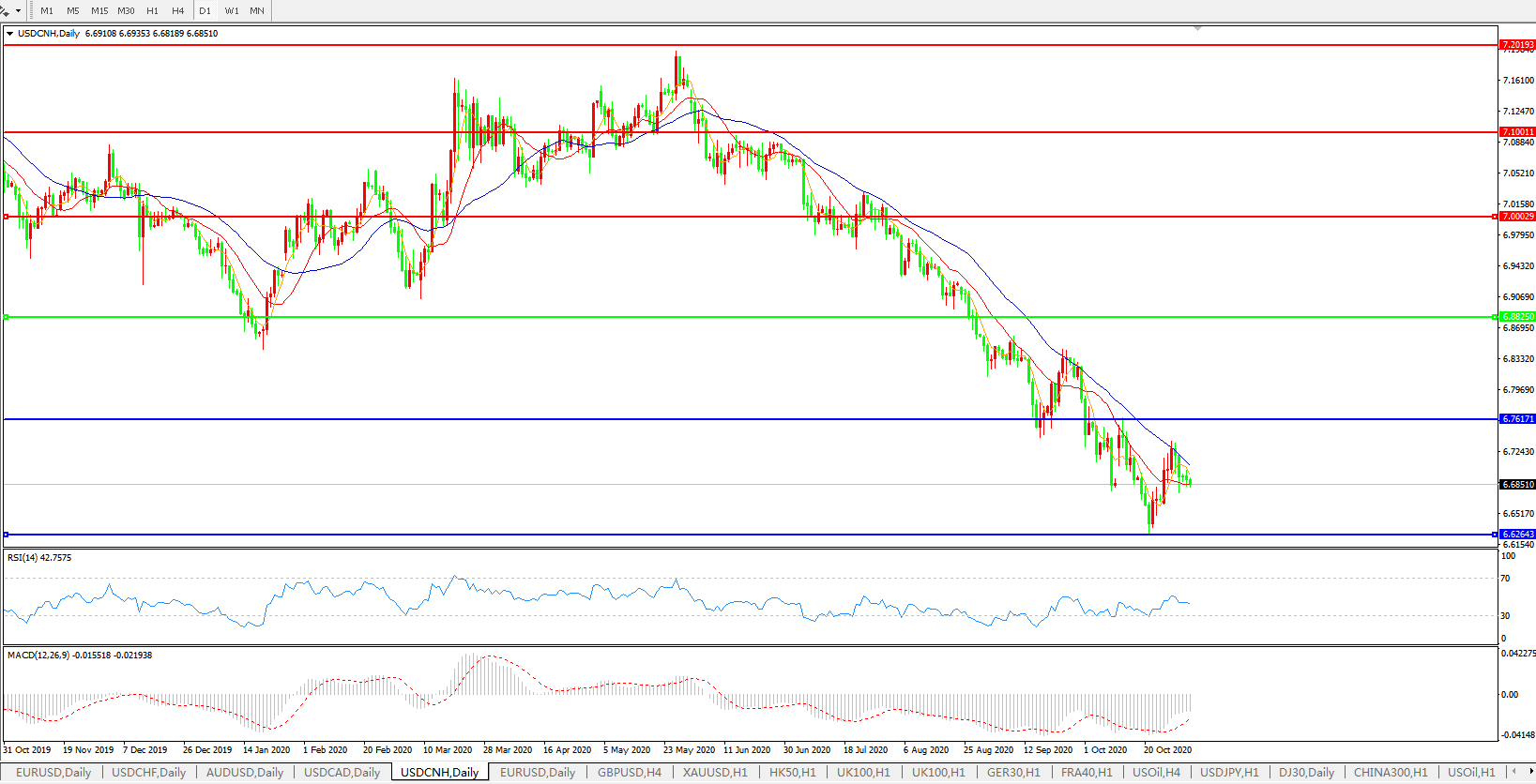美元兑人民币USDCNH    日线图: