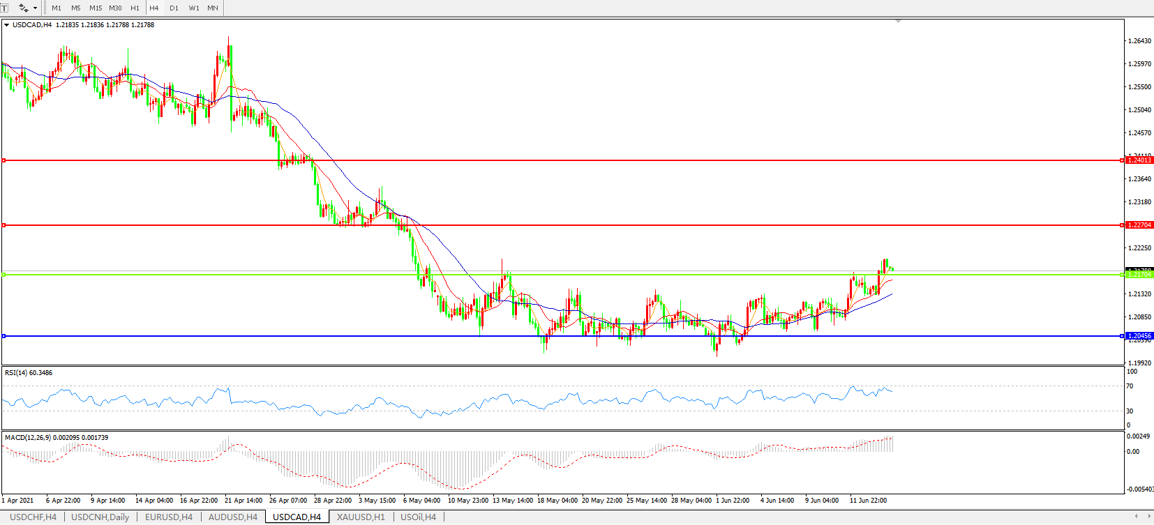 美元兑加元USDCAD 4小时图:
