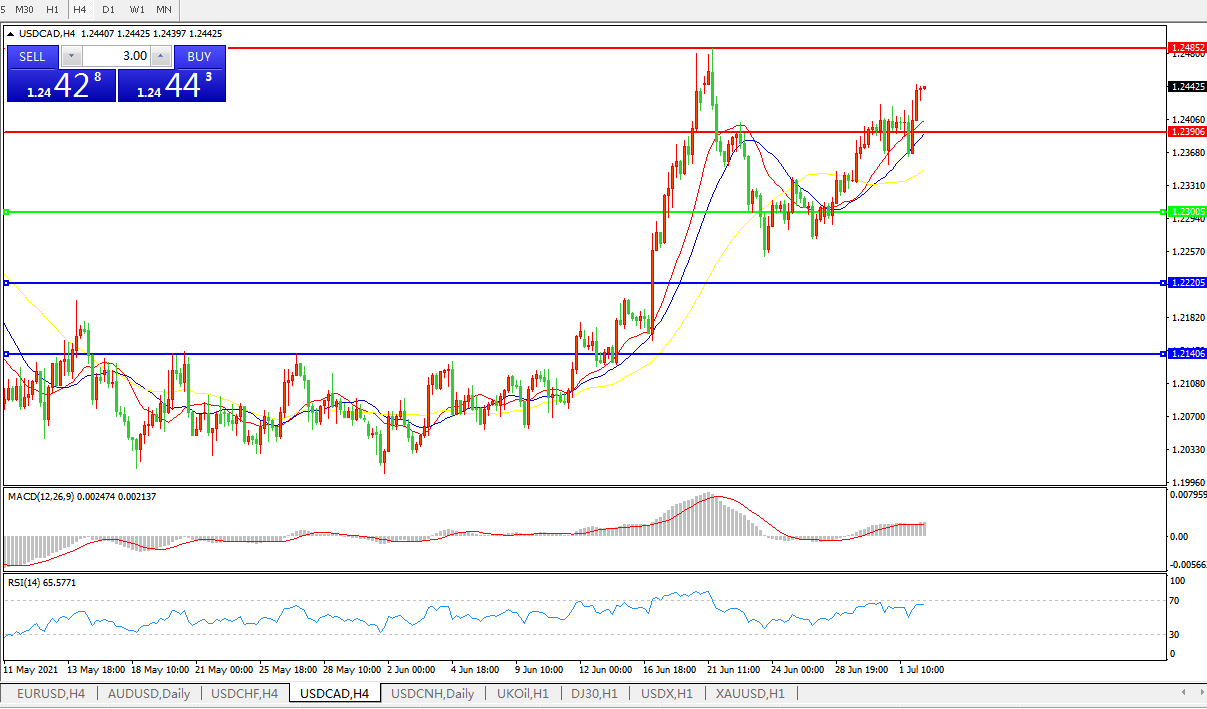 美元兑加元USDCAD    4小时图: