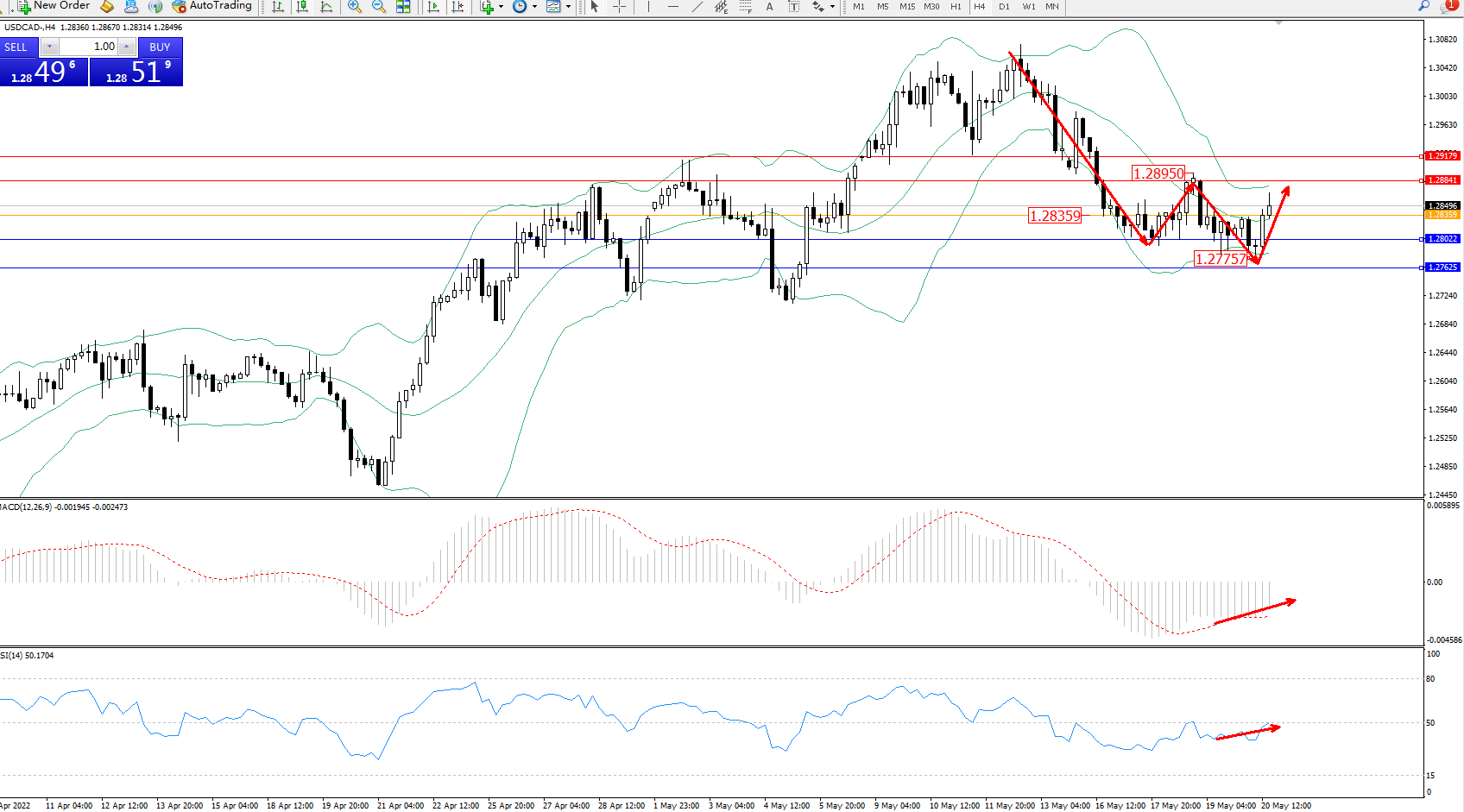 美元加元USDCAD——4小时K线图显示:
