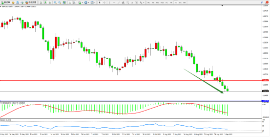市场空头情绪笼罩,短期跌势未见止步,且有进一步向下移动态势,上方压制关注1.16747附近,低位支撑关注1.13570附近,MACD指标处于空头区域维持震荡下行,RSI指标处于空头区域维持弱势徘徊,如图: