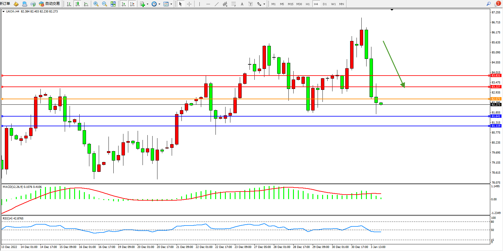 布油UKOil——4小时K线图显示:
