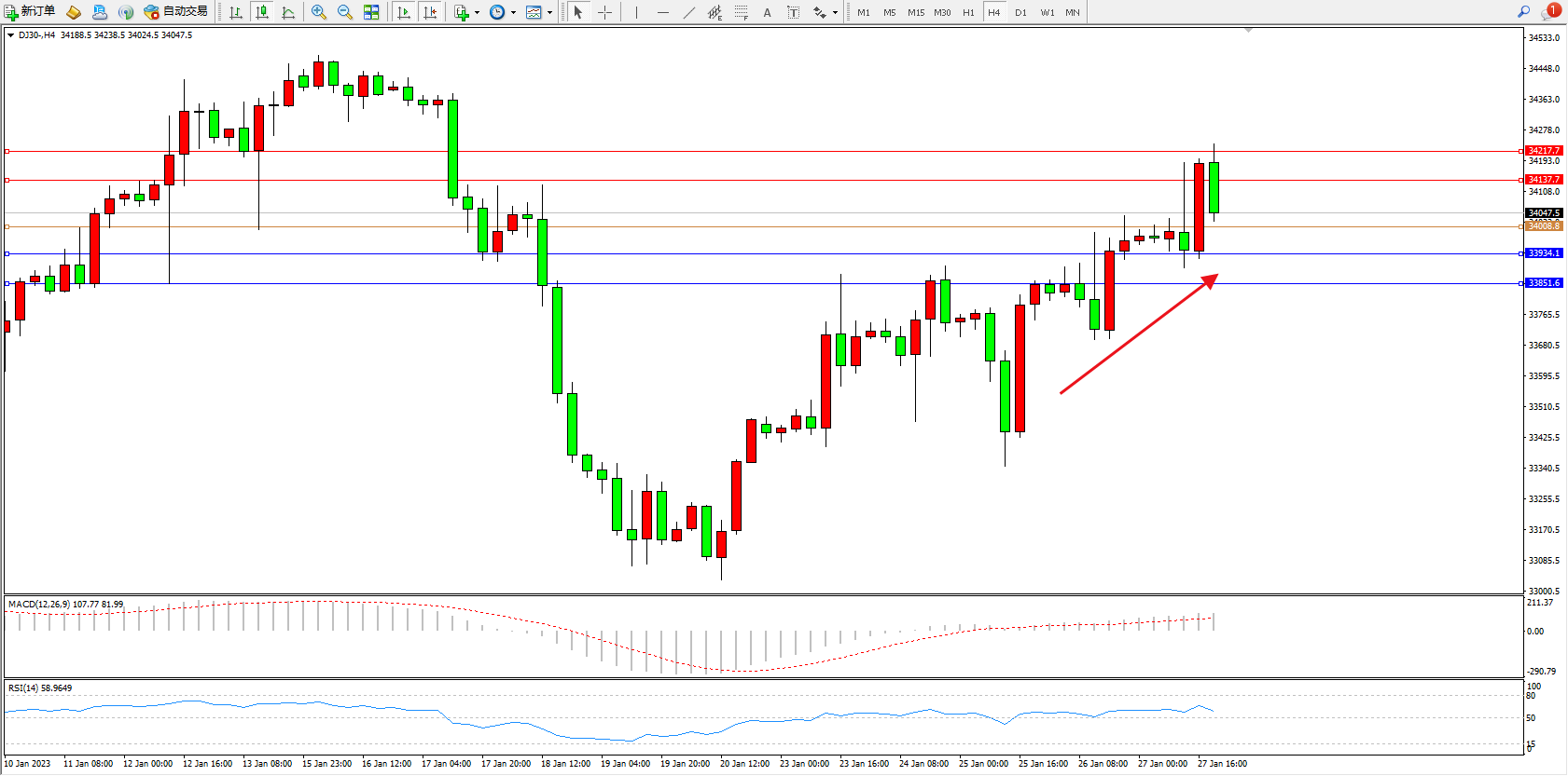 道琼斯指数1月27日(周五)收盘上涨28.67点,涨幅0.08%,报33978.08点;美国全年通胀预期连续第四个月下降,从去年12月的4.4%降至今年1月的3.9%。这是自2021年4月以来的最低水平,但仍远高于大流行前两年的2.3%-3.0%。长期通胀预期保持在2.9%,但在过去18个月中有17个月再次保持在2.9-3.1%的狭窄区间内,相对于大流行前两年的2.2-2.6%的区间仍处于较高水平。