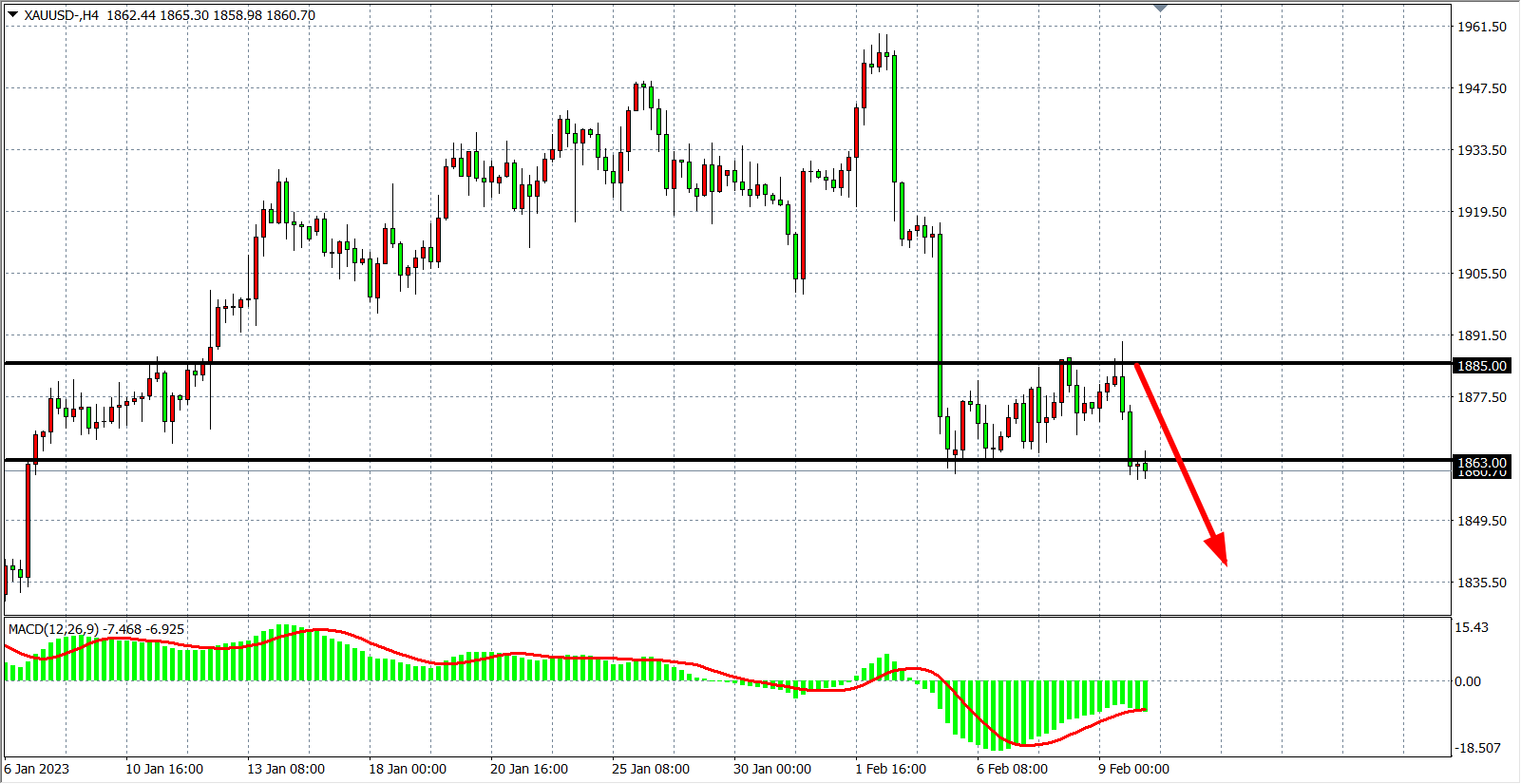 交易策略:在1885.00 之下看跌,目标1850.00         1830.00