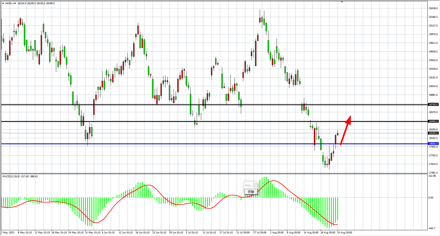 备选策略:18000    上方看涨,目标 18400  18700