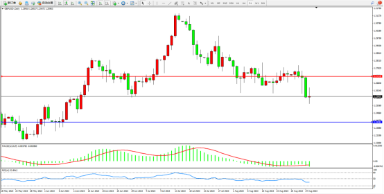 空头动力维持震荡向下移动,短期跌势或将延续,市场整体空头情绪笼罩,上方压制关注1.27270附近,低位支撑关注1.24261附近,MACD指标处于空头区域维持整理,RSI指标处于50均衡线下侧空头区域整理;如图: