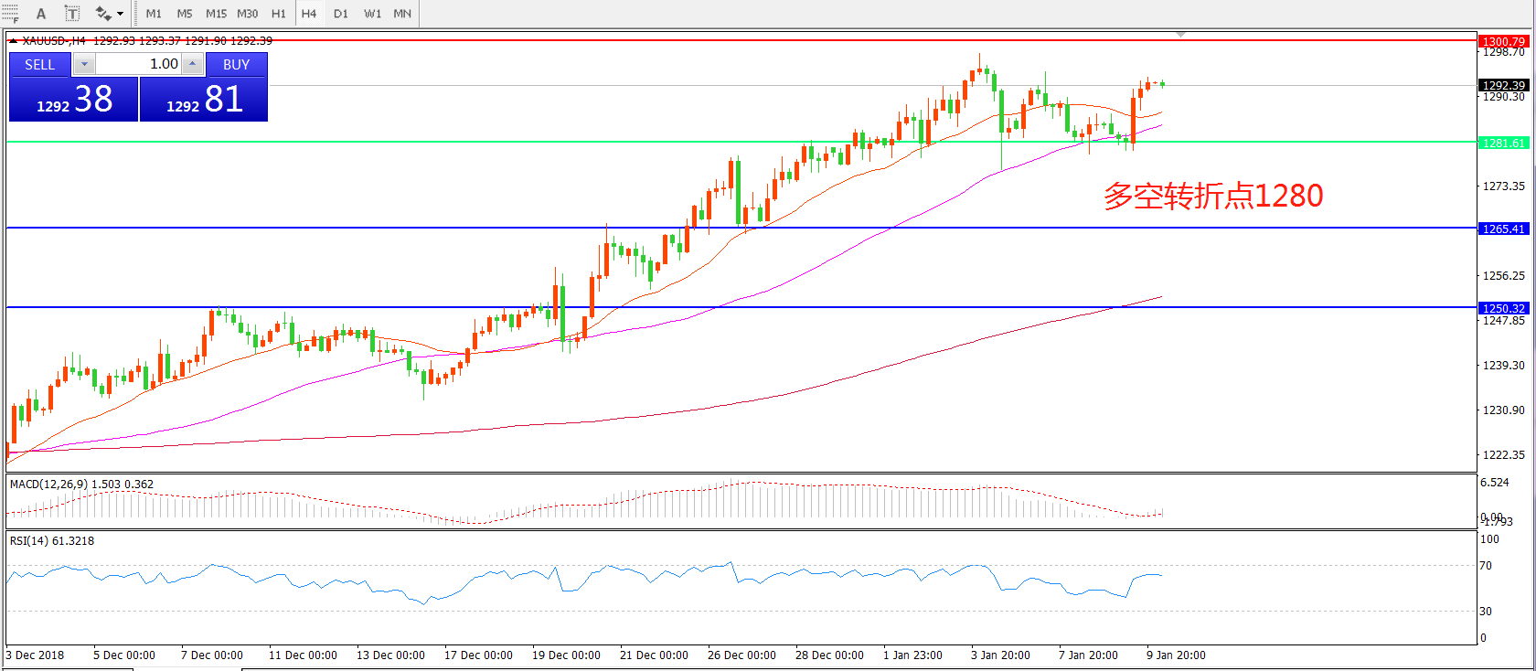 多空转折点:1280.00